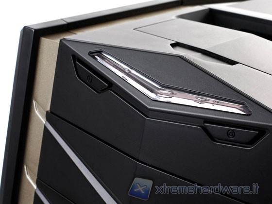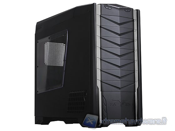 The RV03 is the result of the effort made by the RAVEN development team, in order to redefine and improve the enthusiast tower chassis line. The Raven RV03 spots world-class cooling performance derived by the previous RAVEN chassis models and obtained by the two 180mm Air Penetrator fans. A rethinking of the interior layout has enabled dramatic reduction in overall depth of the chassis, compared to RAVEN RV02, while still matching RAVEN RV01’s ability to accommodate Extended ATX motherboard and graphics cards longer than 13 inches. Cable management has been also improved with a new 5cm thick hard drive compartment to allow nearly all cables to be connected behind the motherboard tray with ease. The unconventional power supply compartment located in the lower front of the chassis facilitates cable routing, so anyone can assemble a nice- looking system with maximum airflow efficiency. Champaign colored bands adorn the exterior characterized by aggressive lines, complementing the carefulness of the interior. The stand out styling takes advantage of the chassis’ powerful cooling ability to change the inclination of a set of smartly designed, dual-purpose front bezels that helps to keep the RV03 looking sharp and uniform whether the user is setting up for maximum air cooling or for a silencing build.