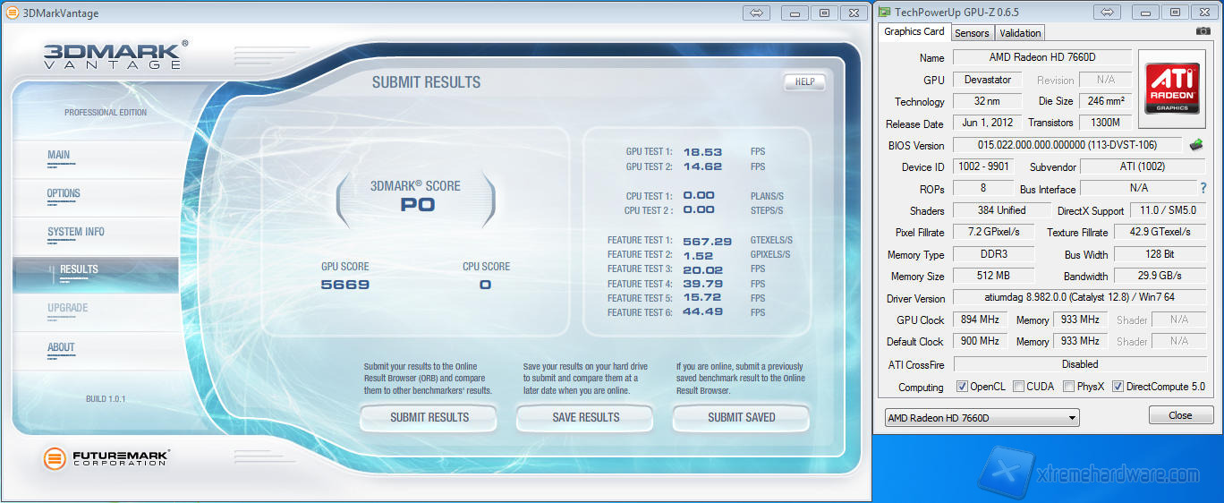 Passiamo ora alla parte grafica, da BIOS portiamo la frequenza della HD7660D a 900MHz, il massimo con cui siamo riusciti a lanciare e chiudere il 3DMark Vantage.