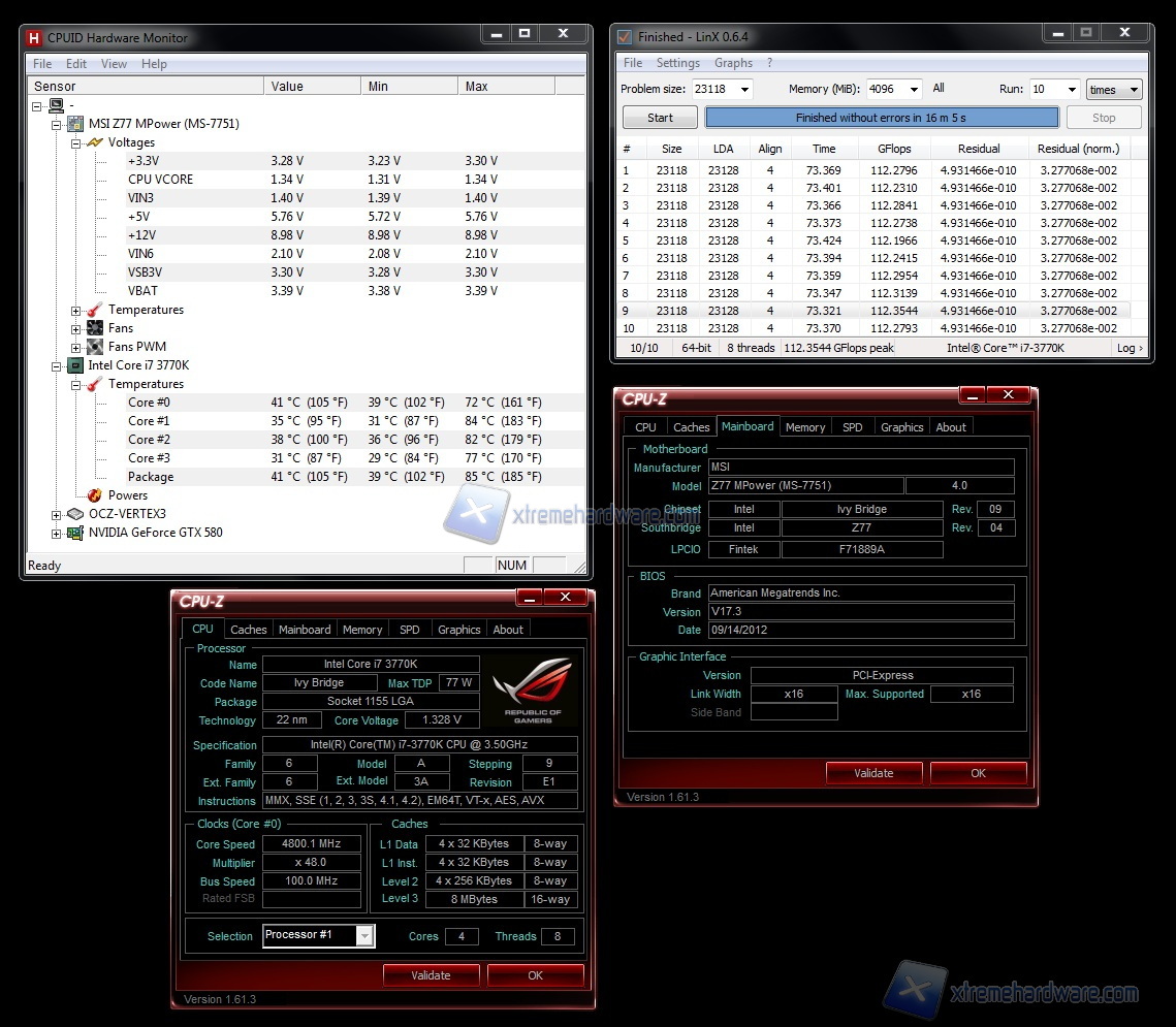 A titolo di comparazione con Core i7-3770K siamo riusciti a chiudere alla frequenza di 4600 MHz sempre utilizzando LinX un valore di 106,5872 GFlops impostando la frequenza delle RAM a 2133MHz.